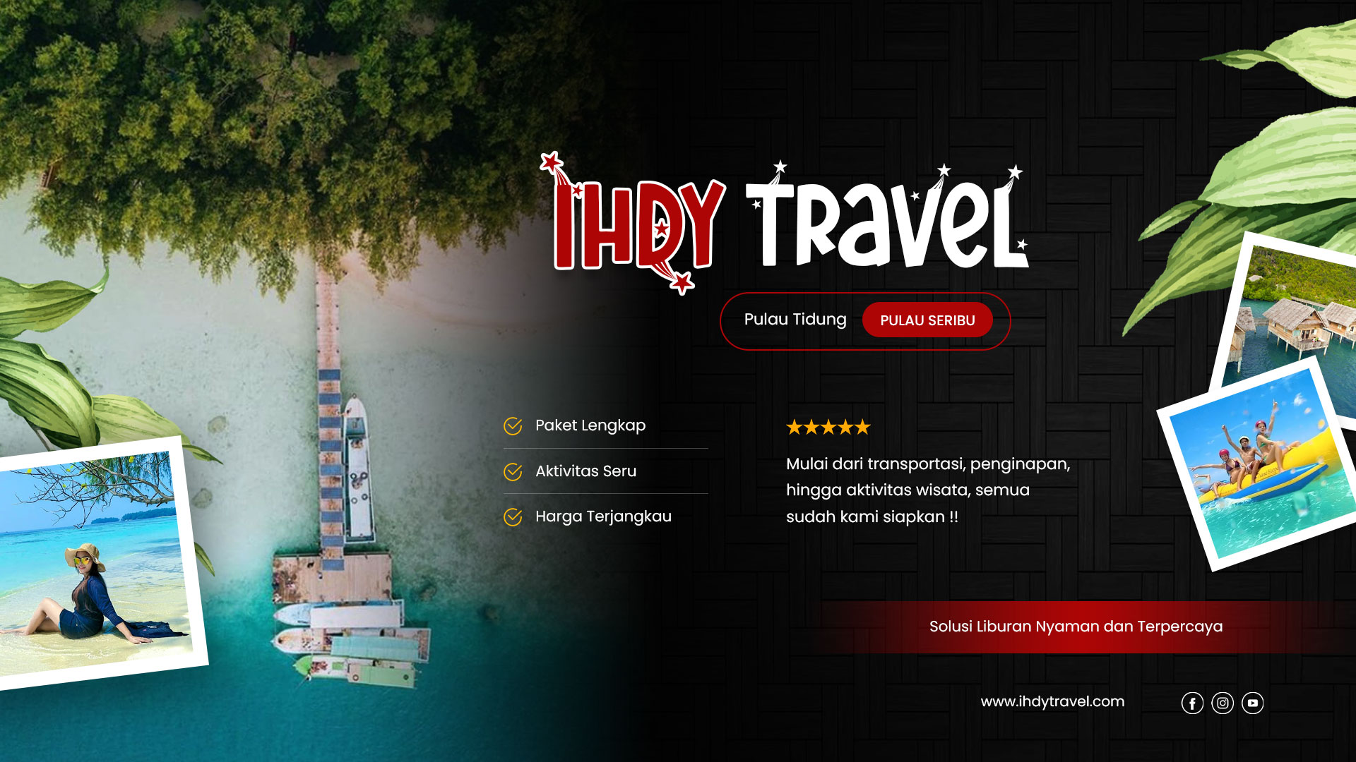 Ihdy Travel adalah penyedia jasa wisata yang berfokus pada paket tour Pulau Seribu, khususnya Pulau Tidung. Kami hadir untuk membantu Anda menikmati liburan laut yang nyaman, seru, dan berkesan tanpa ribet. Dengan pengalaman dan pelayanan profesional, kami siap menjadi partner perjalanan terbaik Anda.